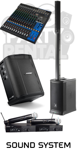 Great events start with great sound. Our sound system rentals feature professional-grade speakers, mixers, and microphones from leading brands like JBL, Bose, and Yamaha.